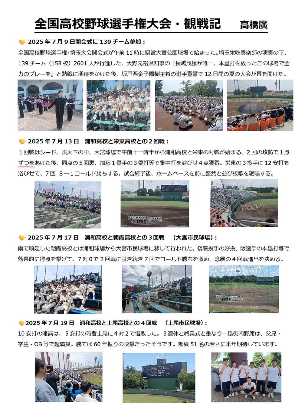 ■全国高校野球選手権大会・観戦記 高橋 廣(高17回)